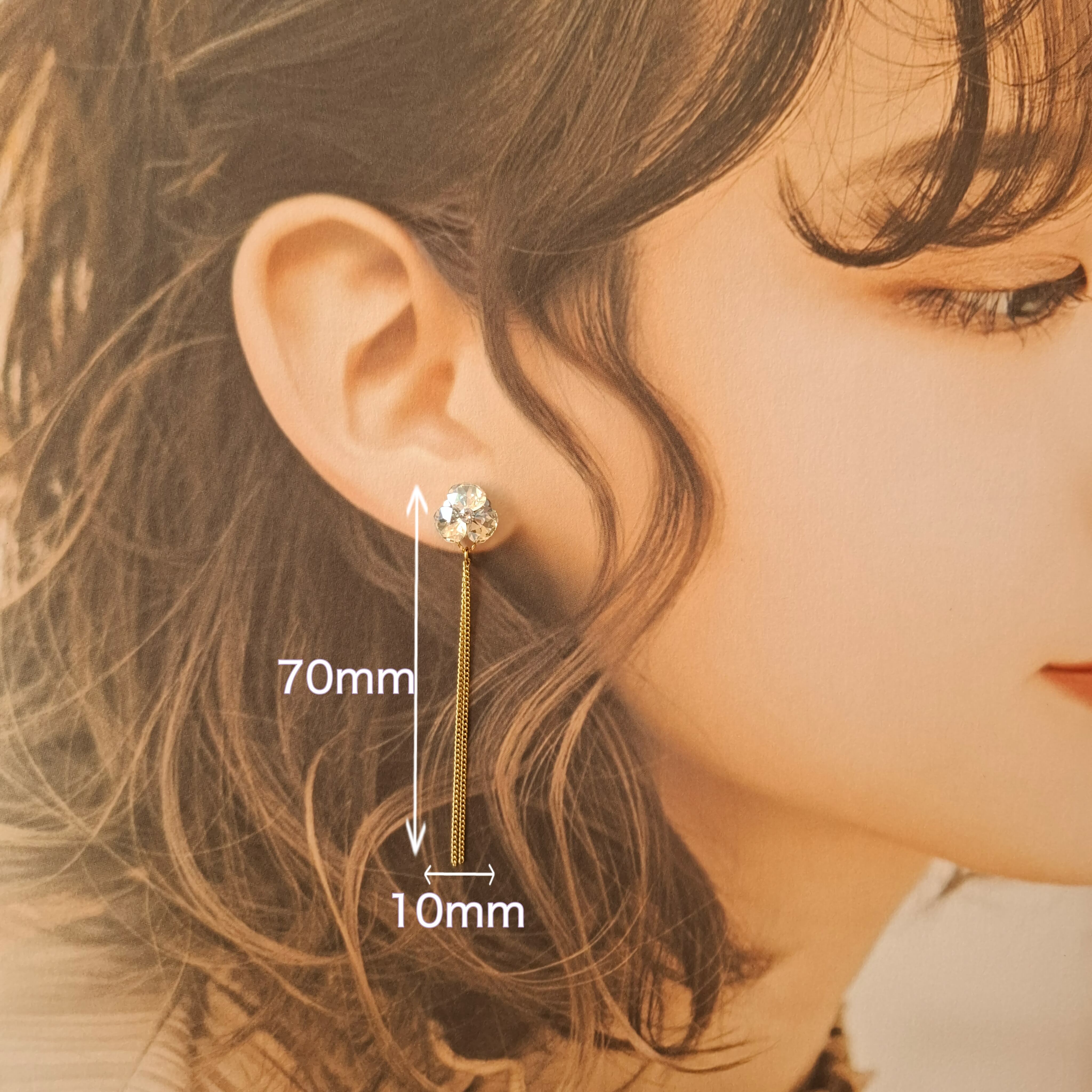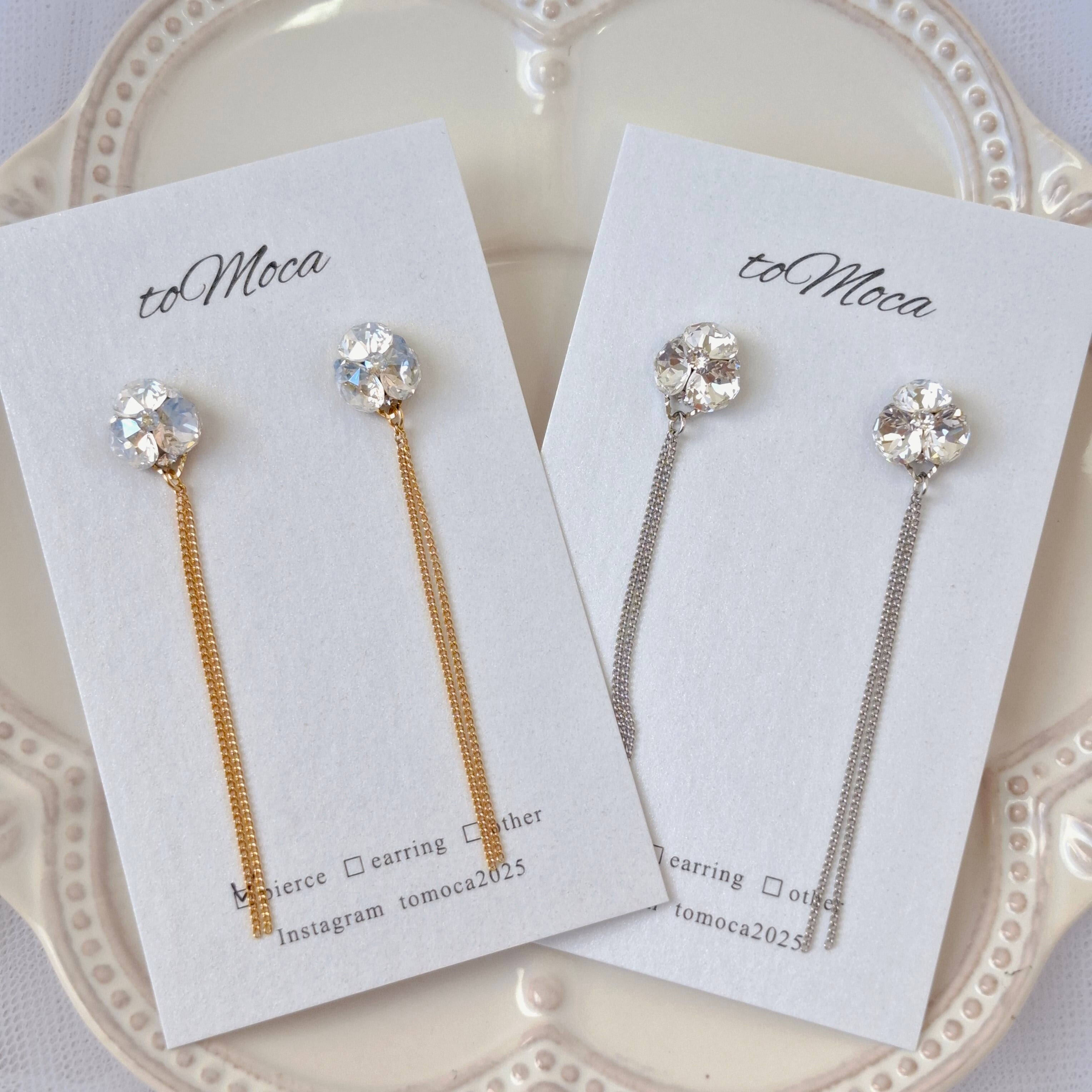 【Elegance:fringe】 ビジューに揺れるチェーンのピアスorイヤリング【クリスタル】