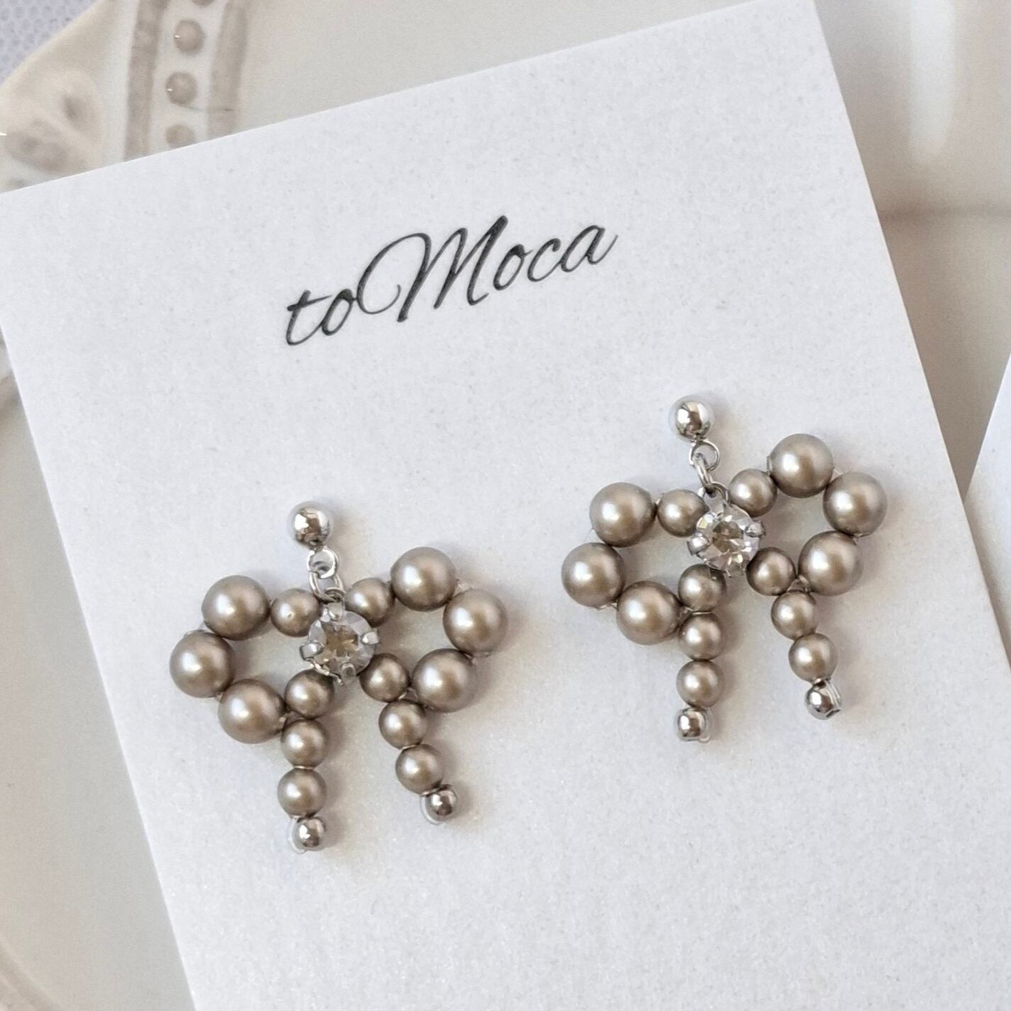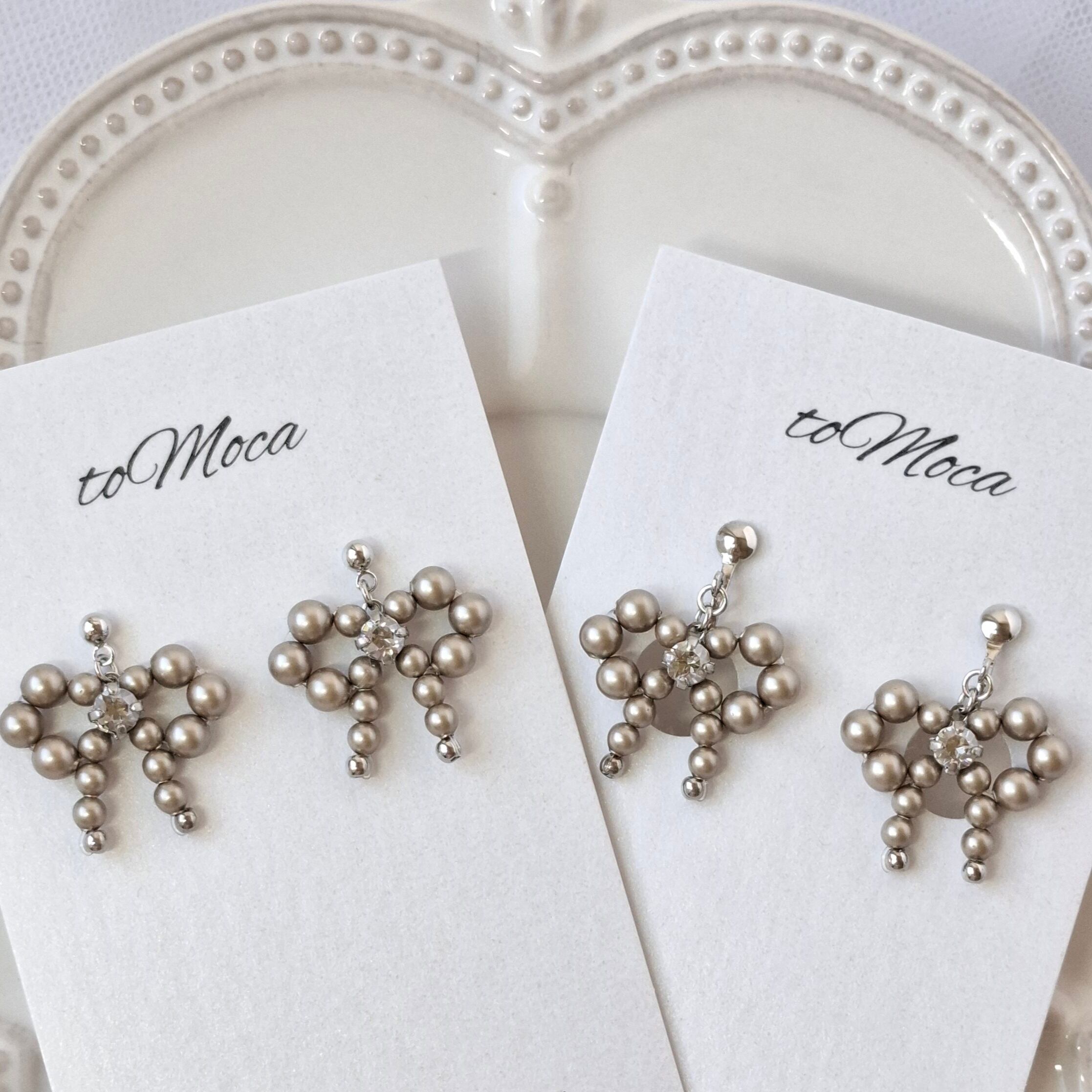 【Petit Pearl Ribbon】 パールの揺れるリボンピアスorイヤリング【プラチナ】