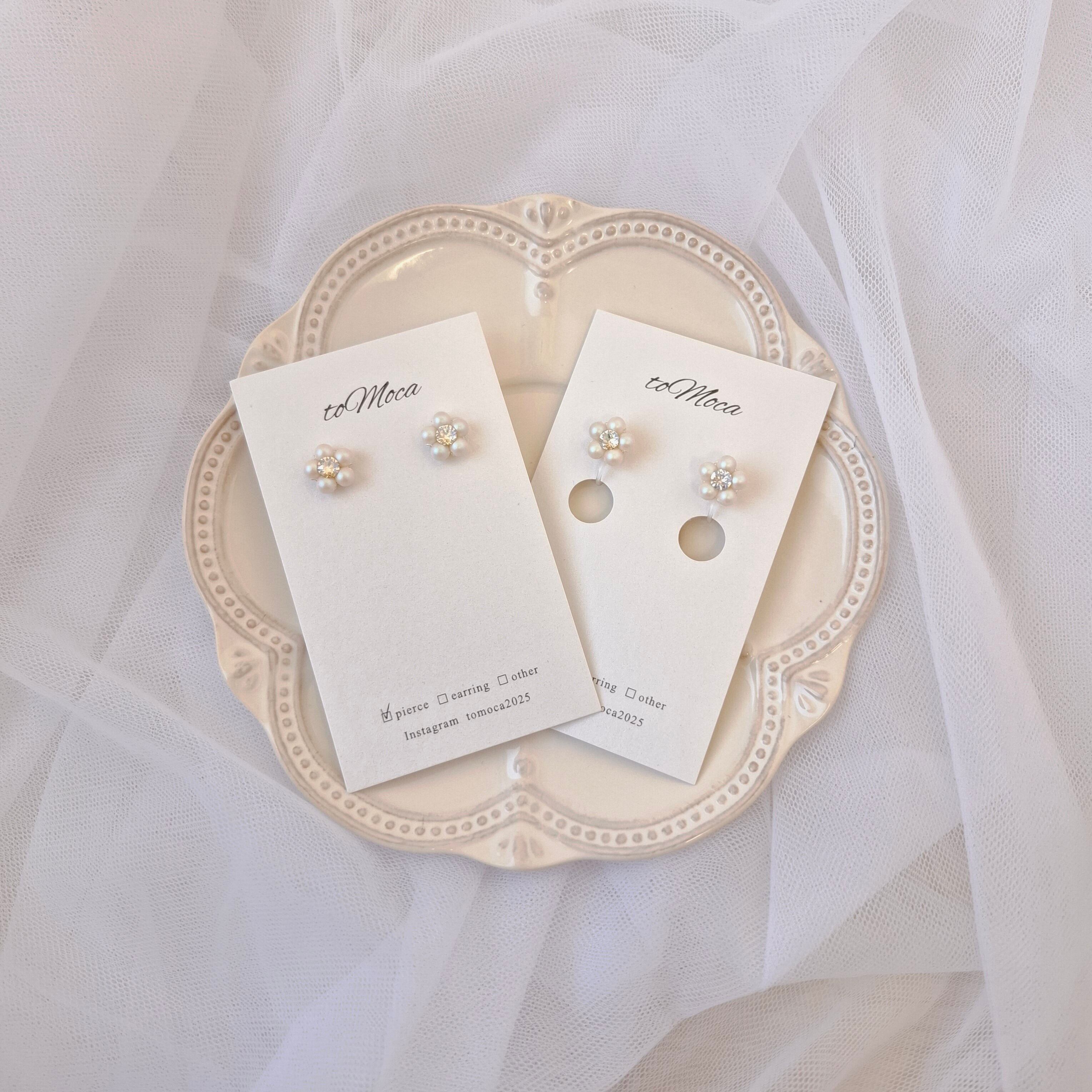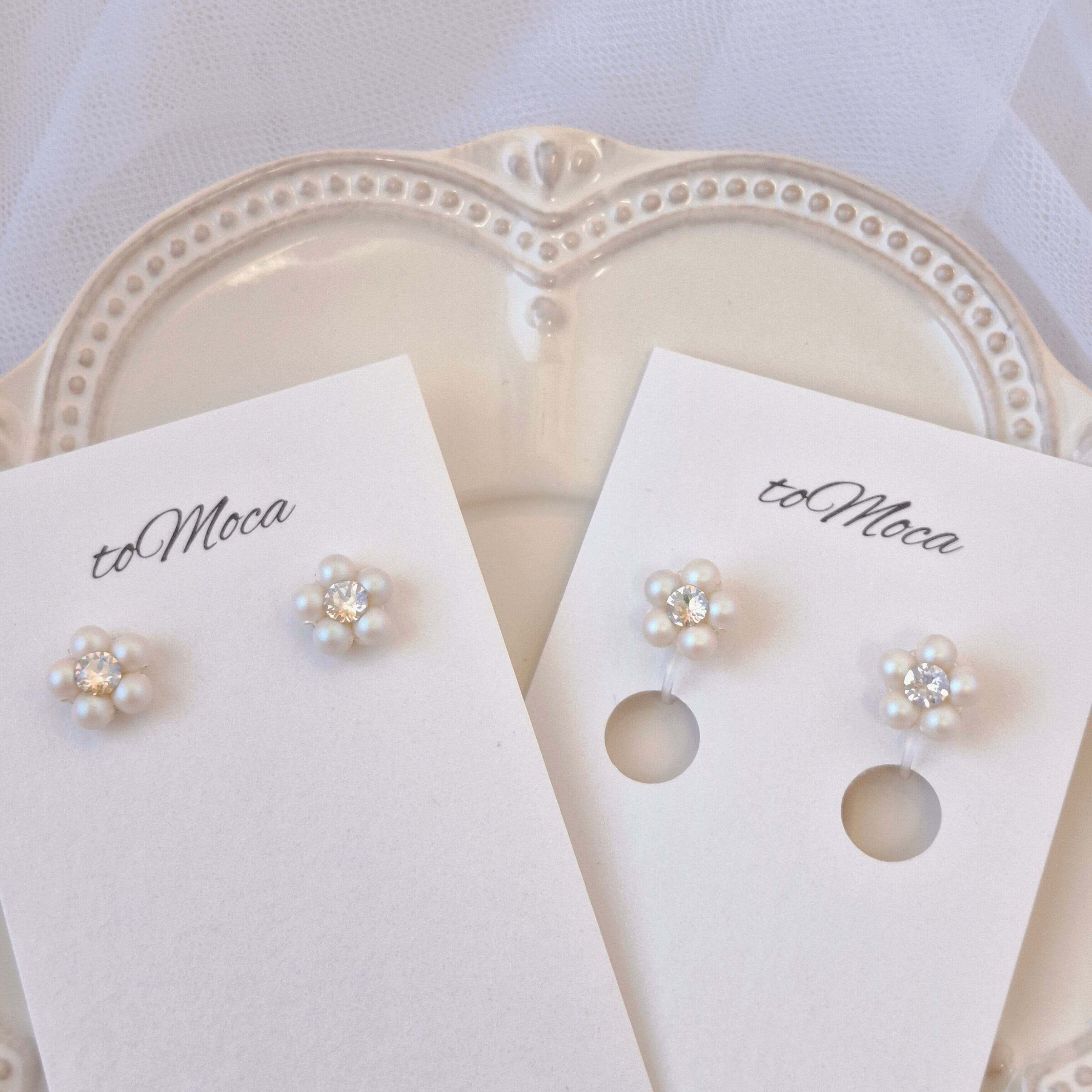 【Petit Pearl Flower Ⅱ 】 ぷっくりお花のワンポイントピアスorイヤリング【オーロラホワイト】