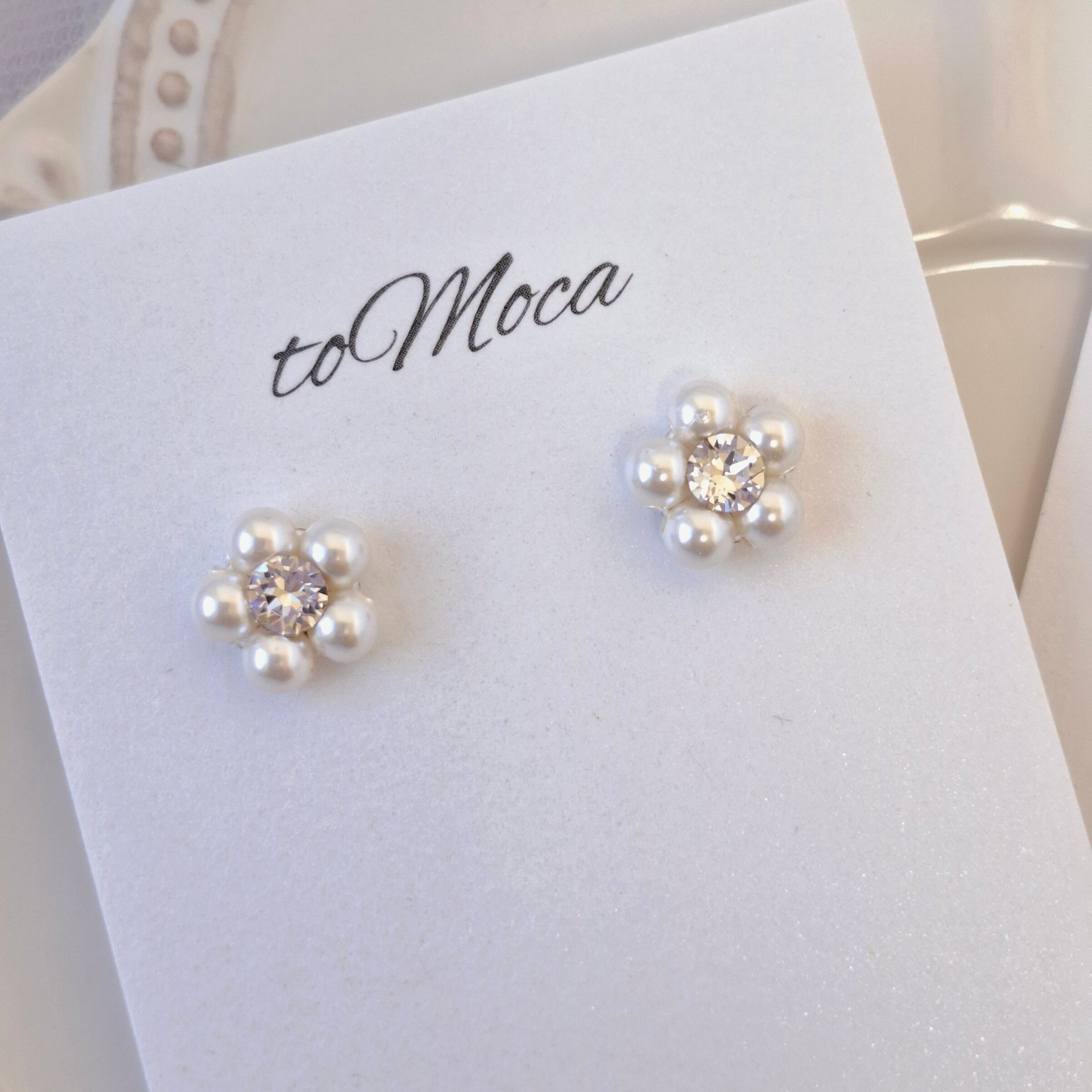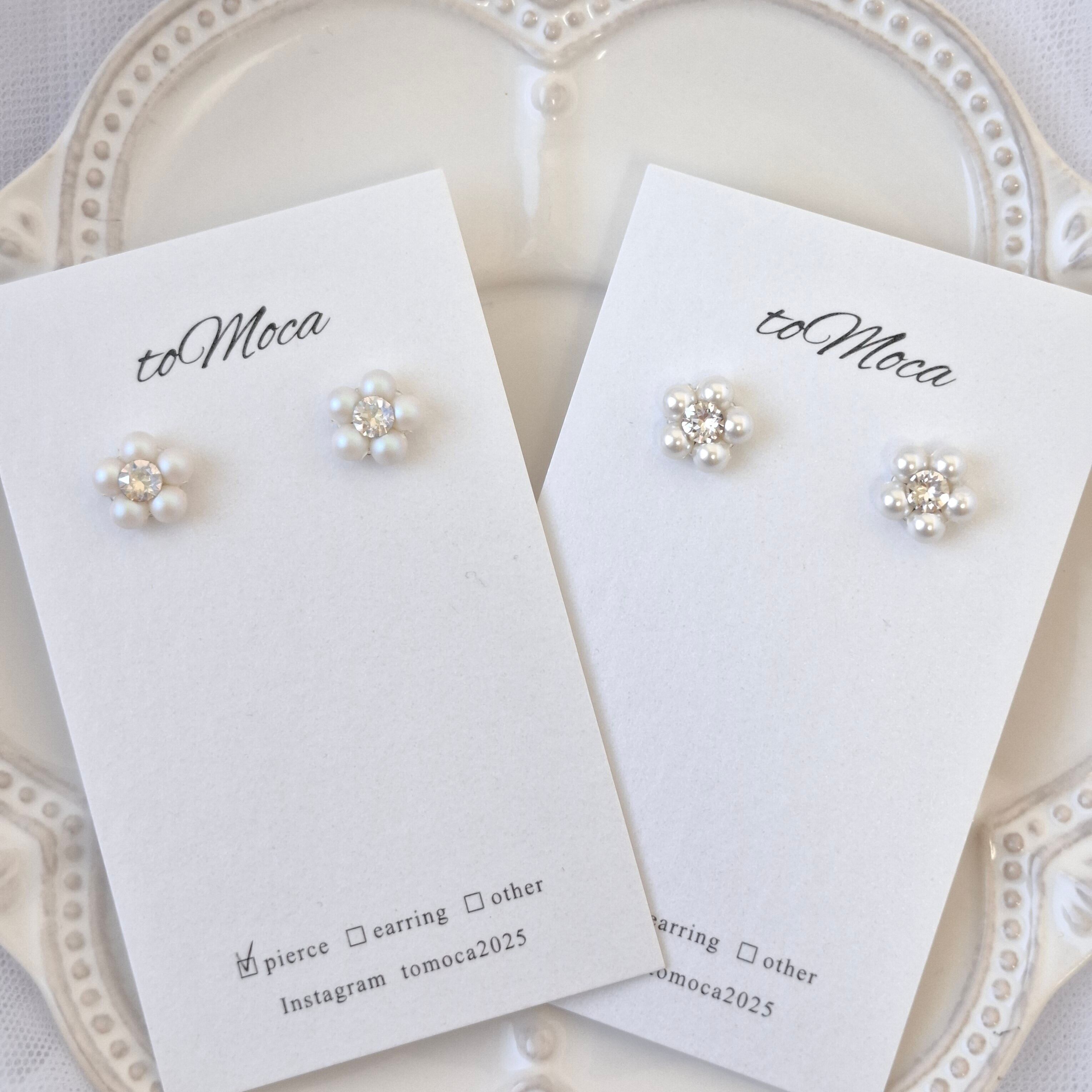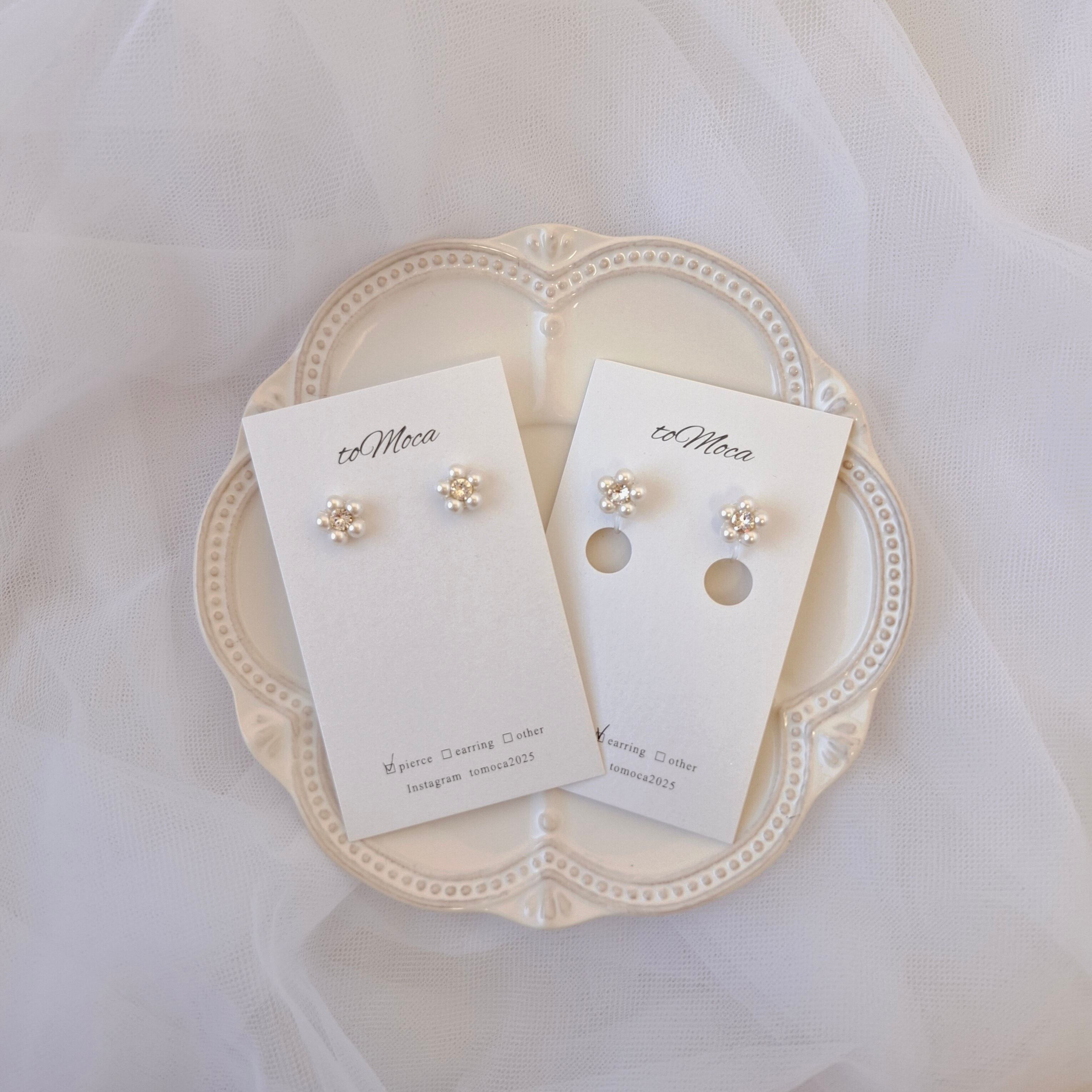 【Petit Pearl Flower Ⅱ 】 ぷっくりお花のワンポイントピアスorイヤリング【ホワイト】