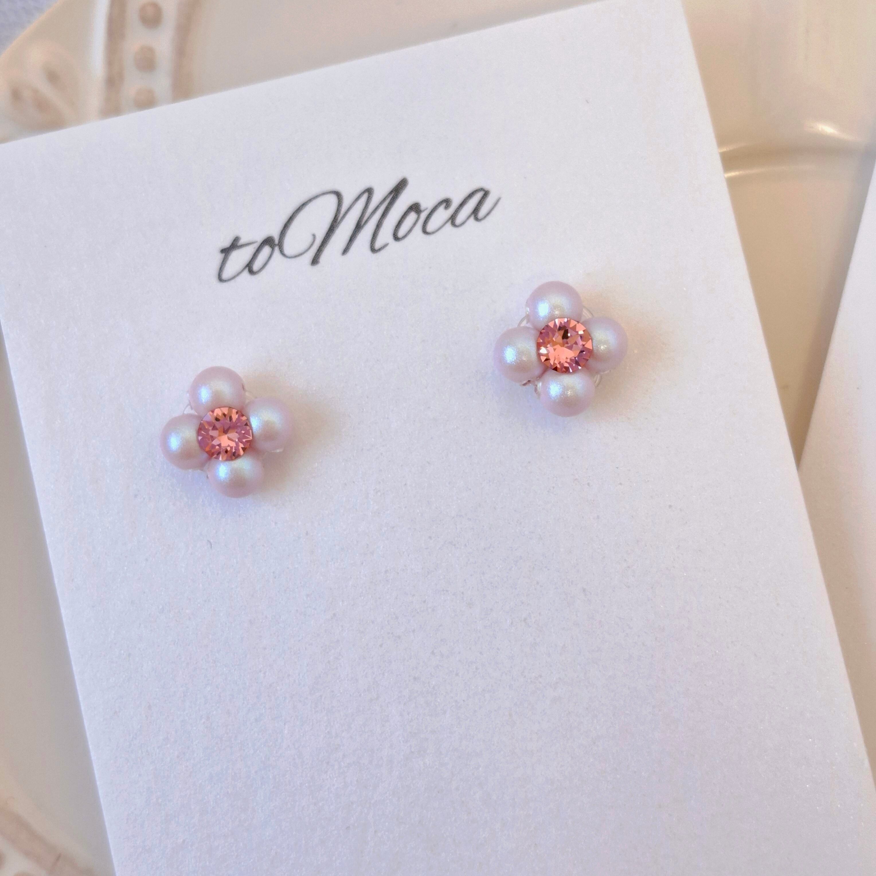 【Petit Pearl Flower】 ぷっくりお花のワンポイントピアスorイヤリング【パステルピンク】