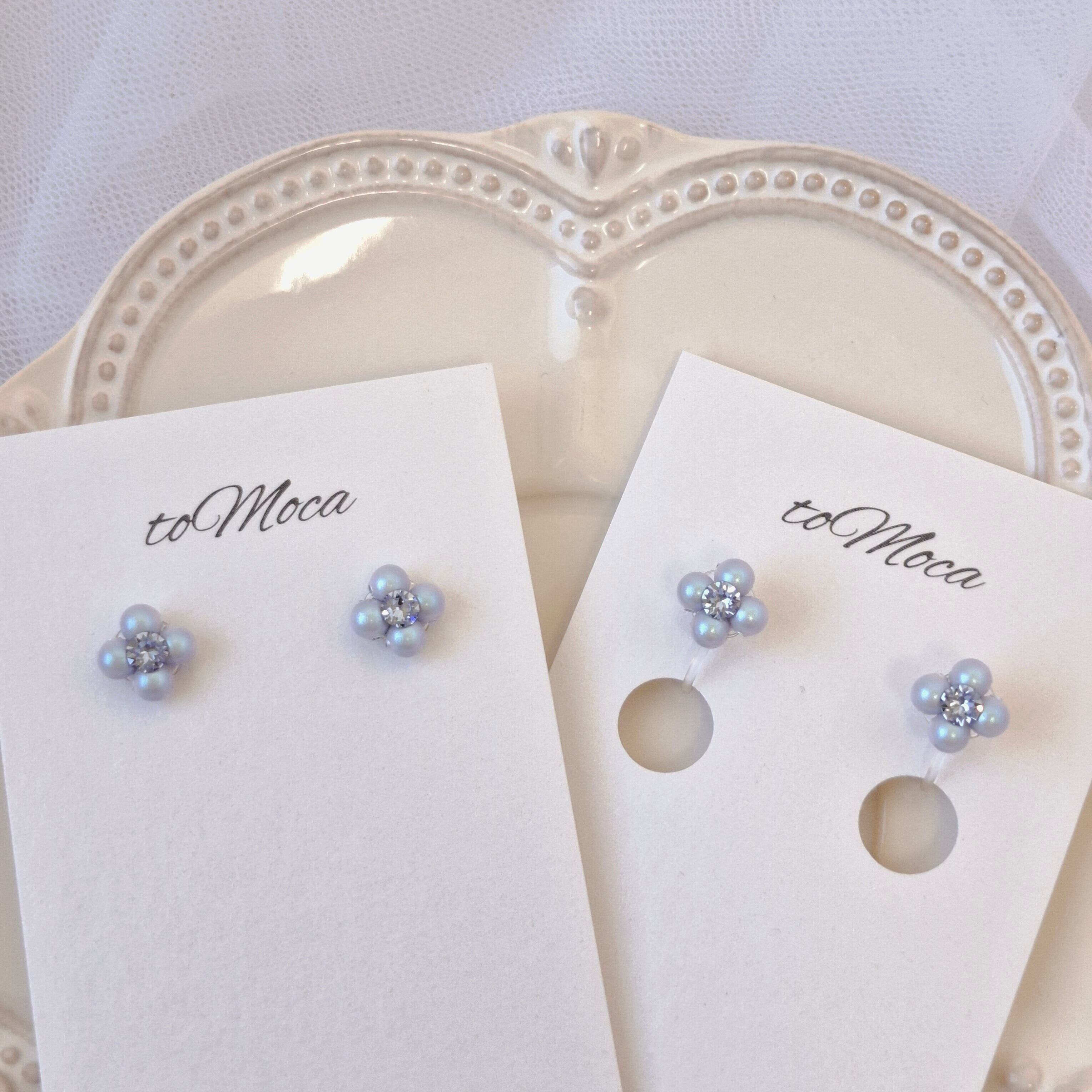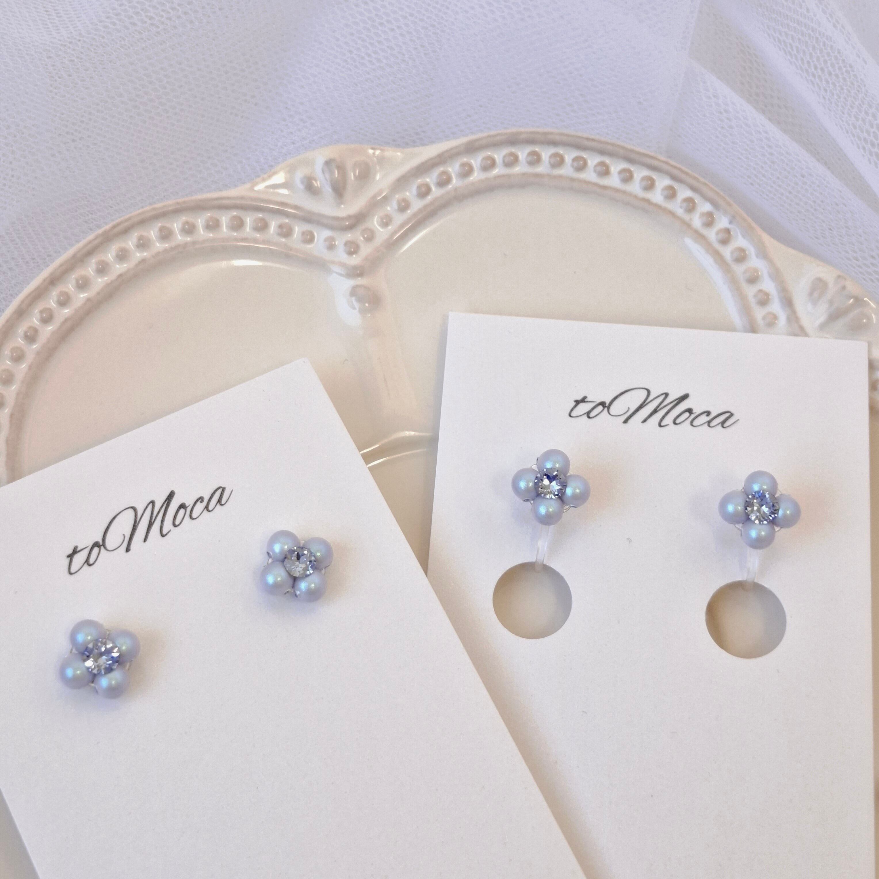 【Petit Pearl Flower】 ぷっくりお花のワンポイントピアスorイヤリング【パステルブルー】