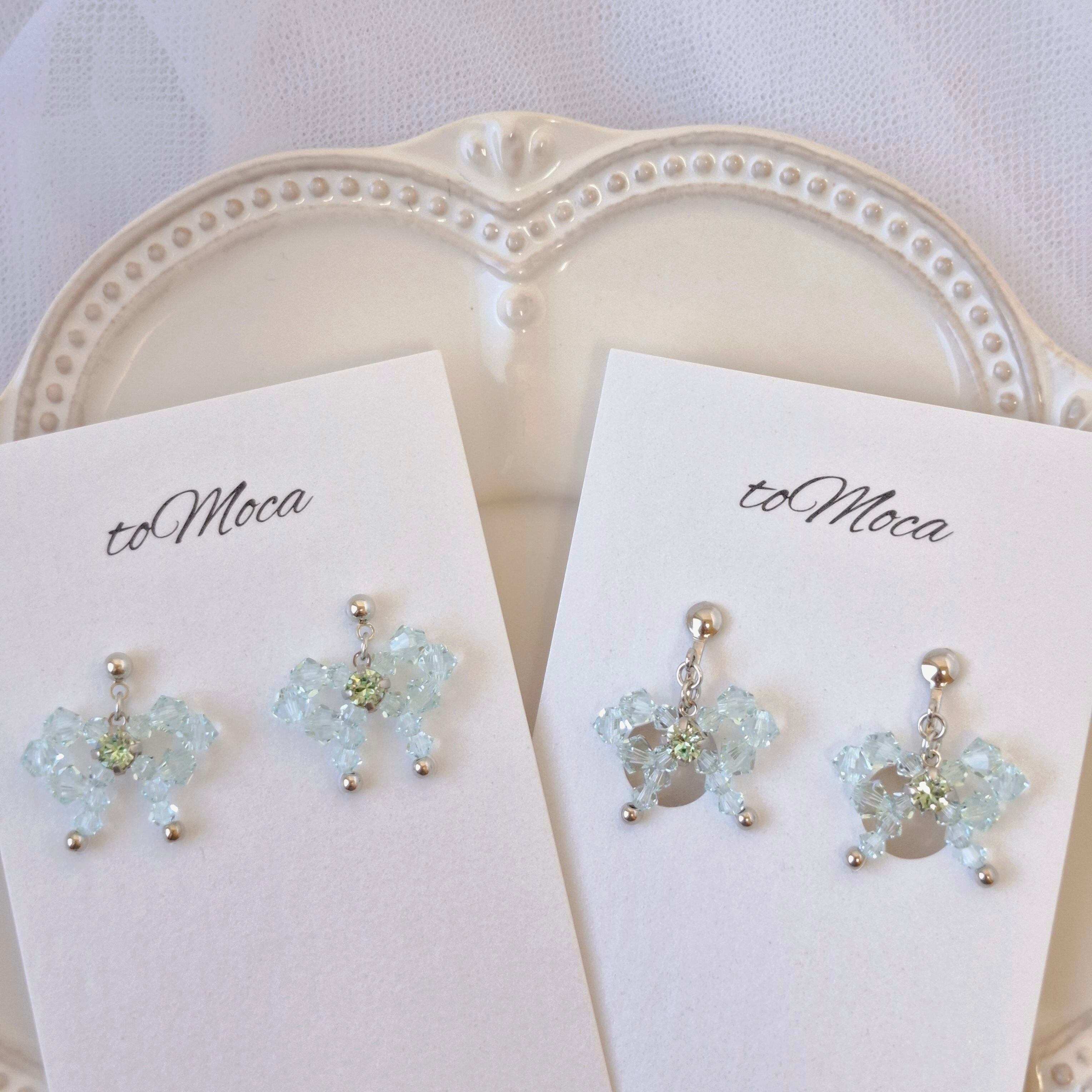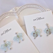 【Petit Beads Ribbon】 ビーズの揺れるリボンピアス【ライトアゾレ】orイヤリング【】