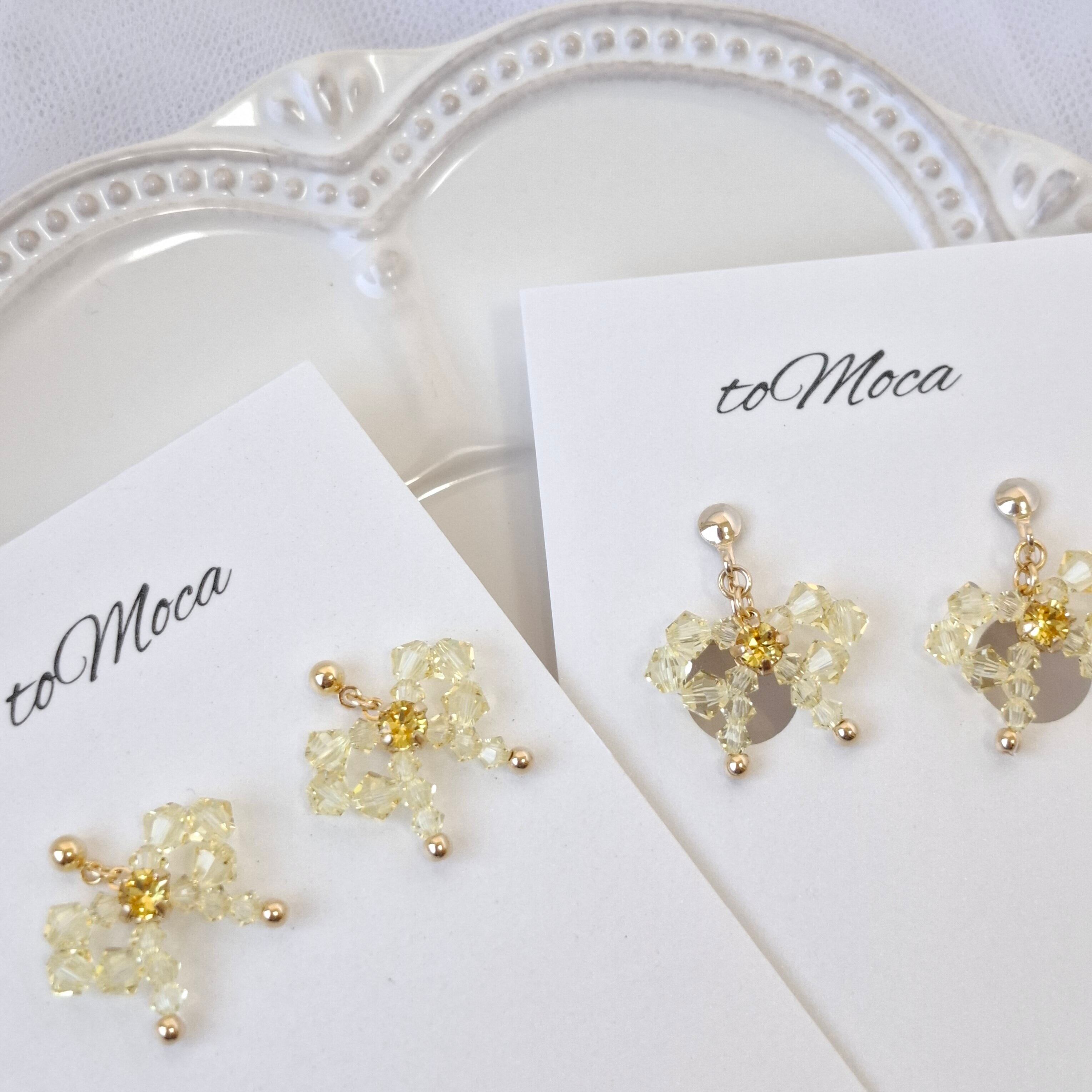 【Petit Beads Ribbon】 ビーズの揺れるリボンピアスorイヤリング【ジョンキル】