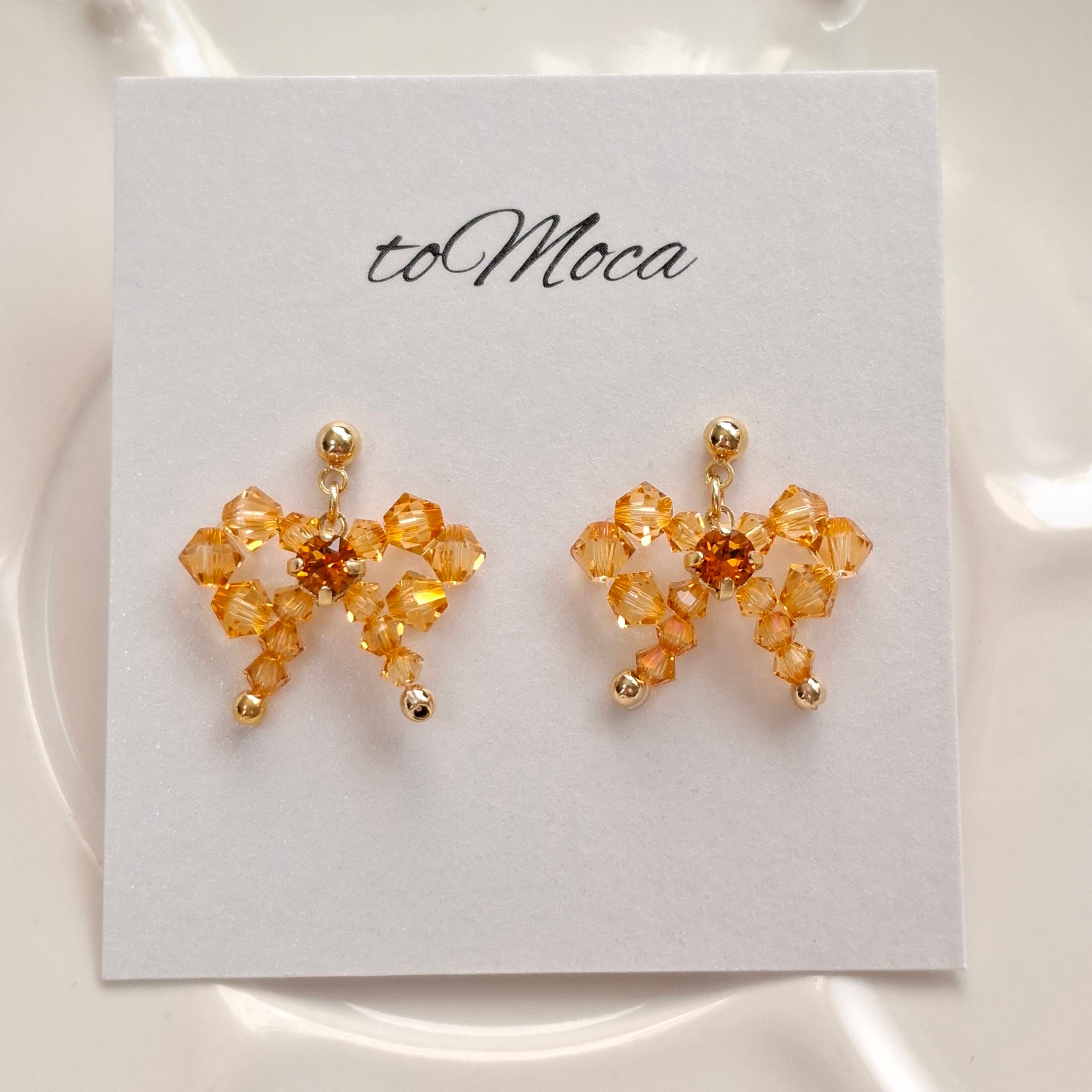 【Petit Beads Ribbon】 ビーズの揺れるリボンピアスorイヤリング【ダークオレンジ】