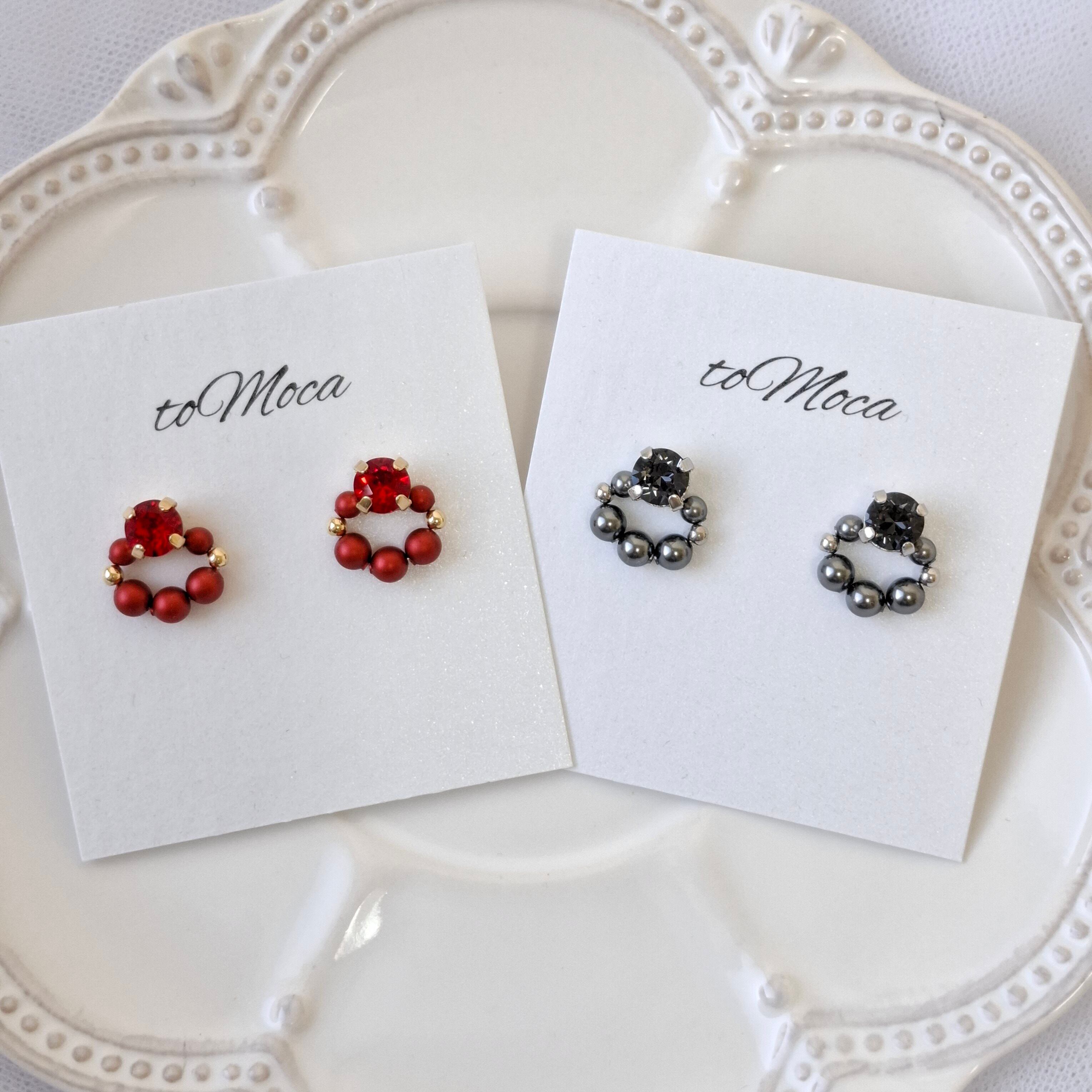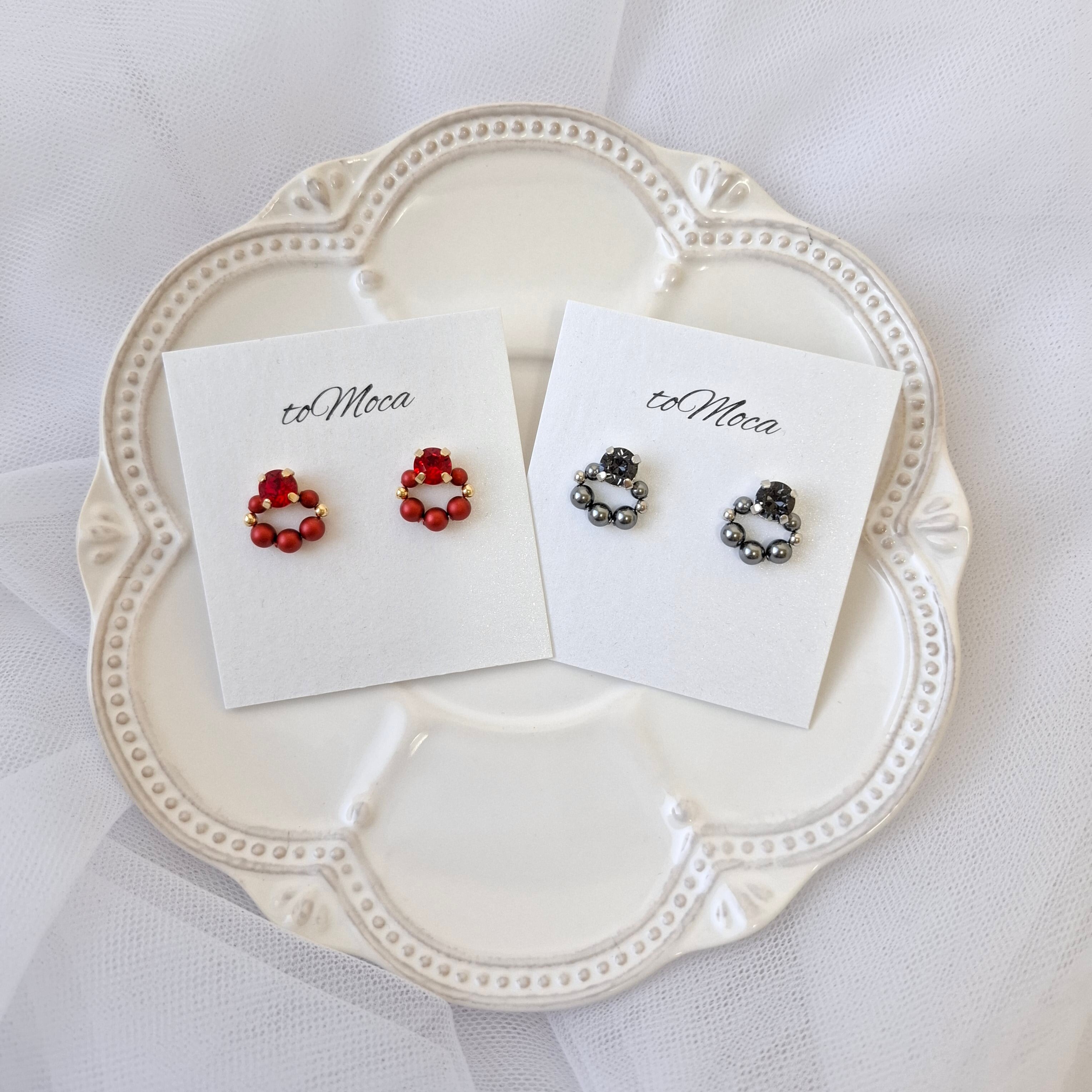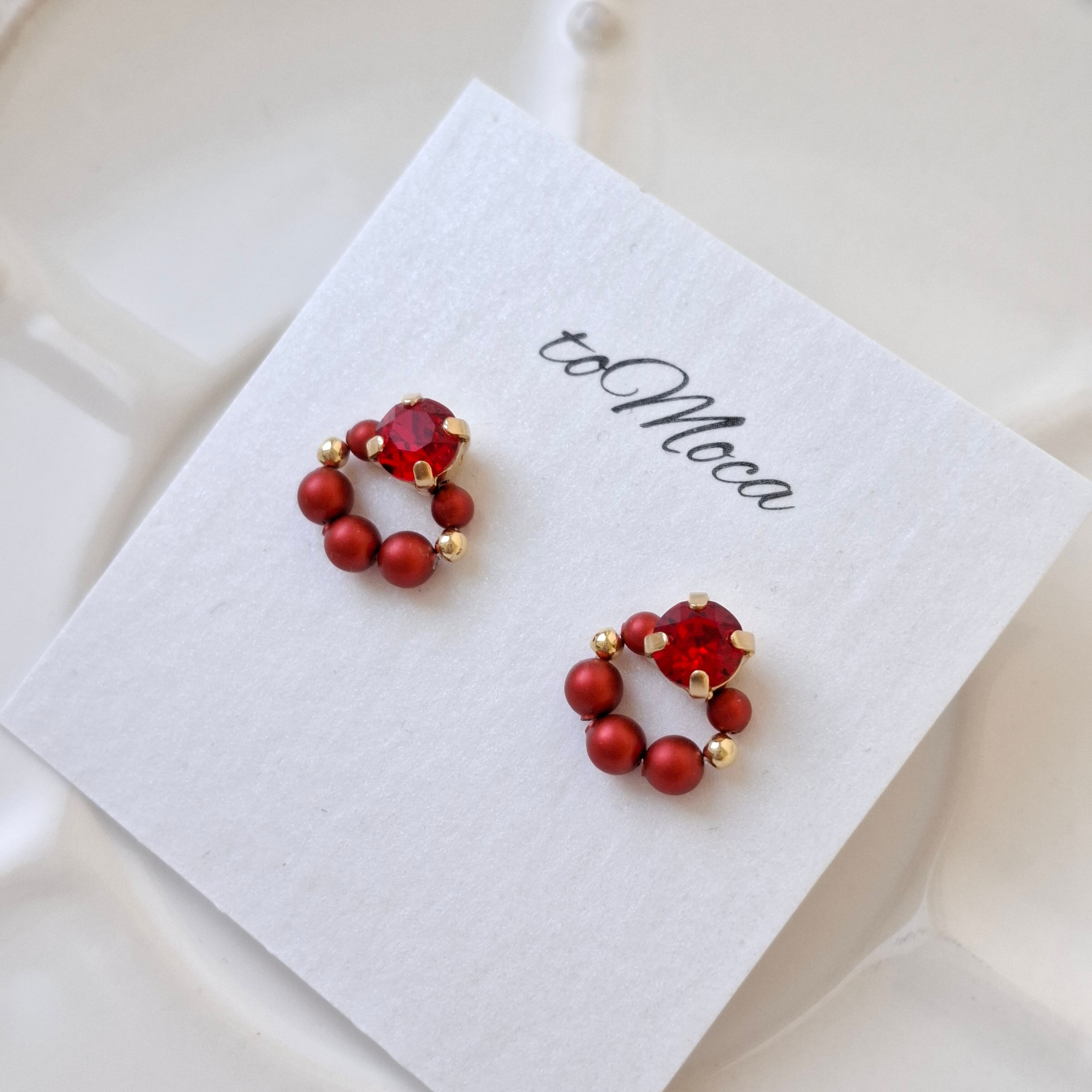 【Petit ring】 パールとビジューのポイントピアスorイヤリング【ルージュレッド】