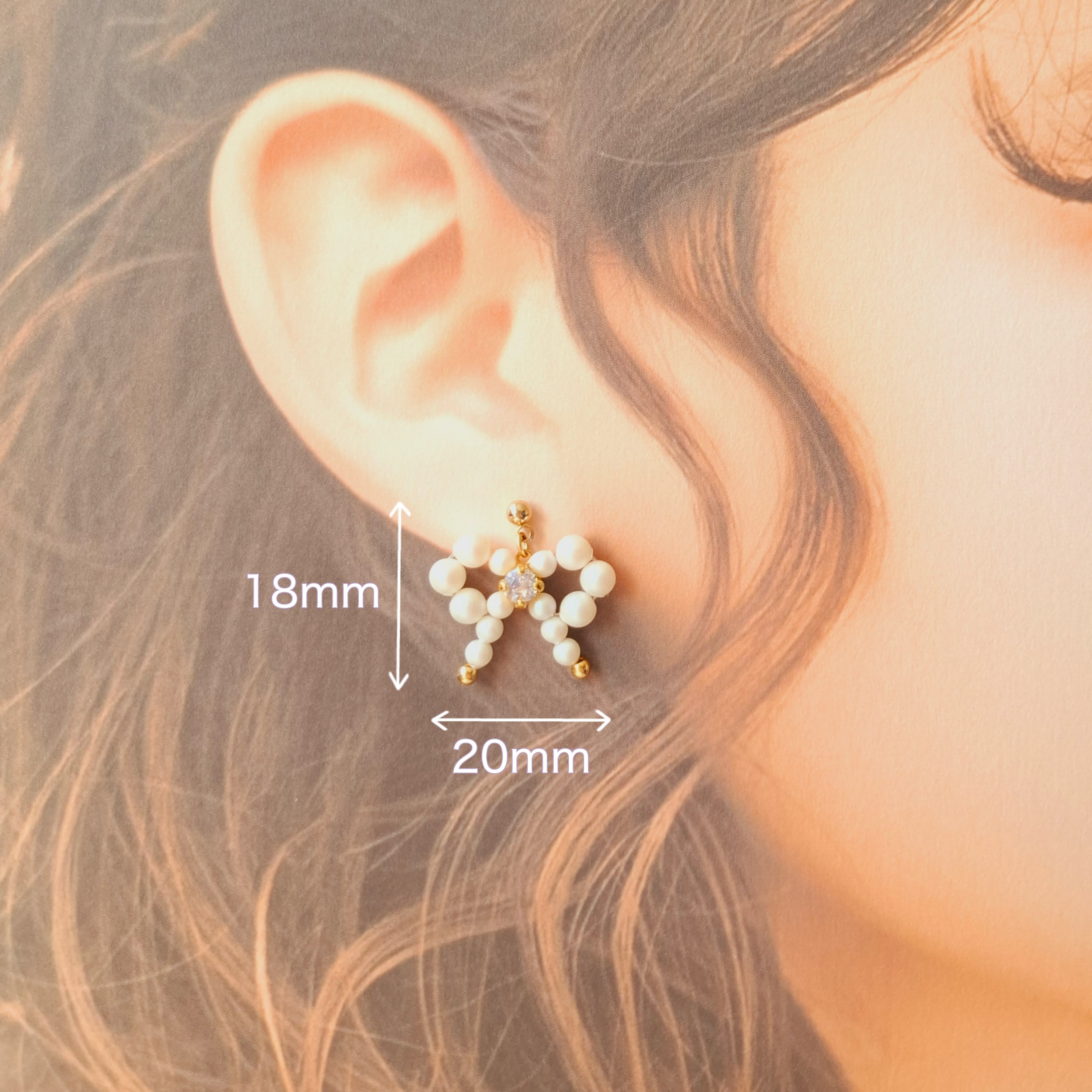 【Petit Pearl Ribbon】 パールの揺れるリボンピアスorイヤリング【ミモザグリーン】