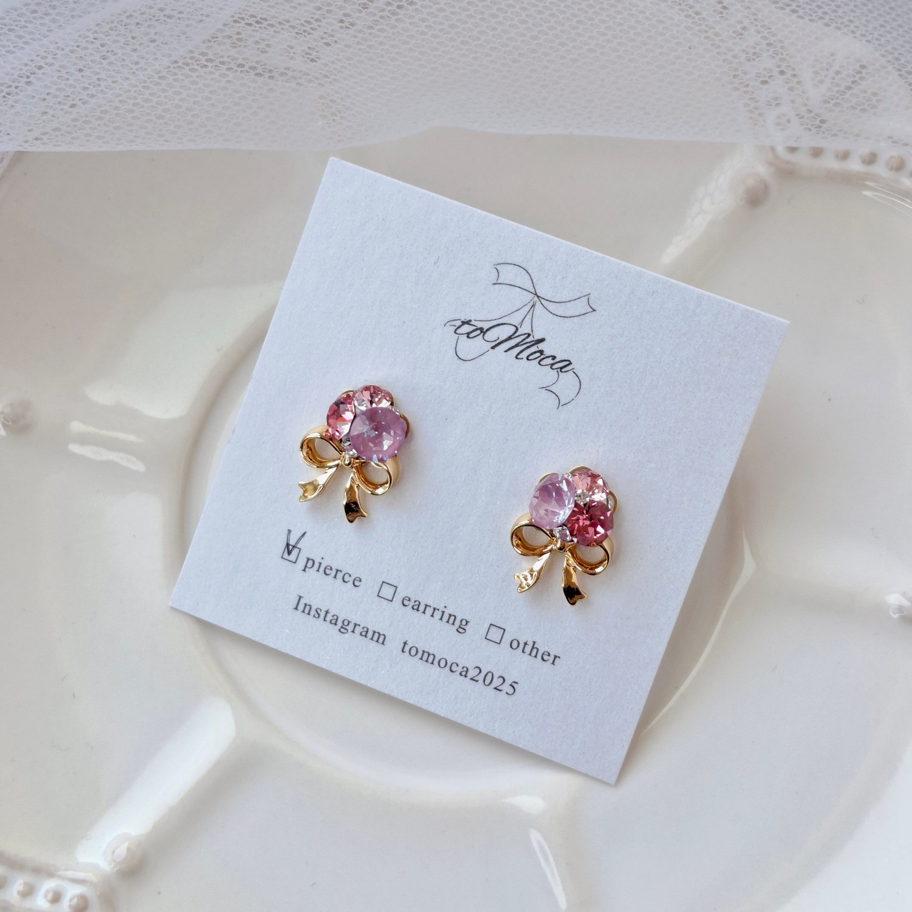 【Petit bouquet】ビジューのブーケピアスorイヤリング【パラダイスパープル】