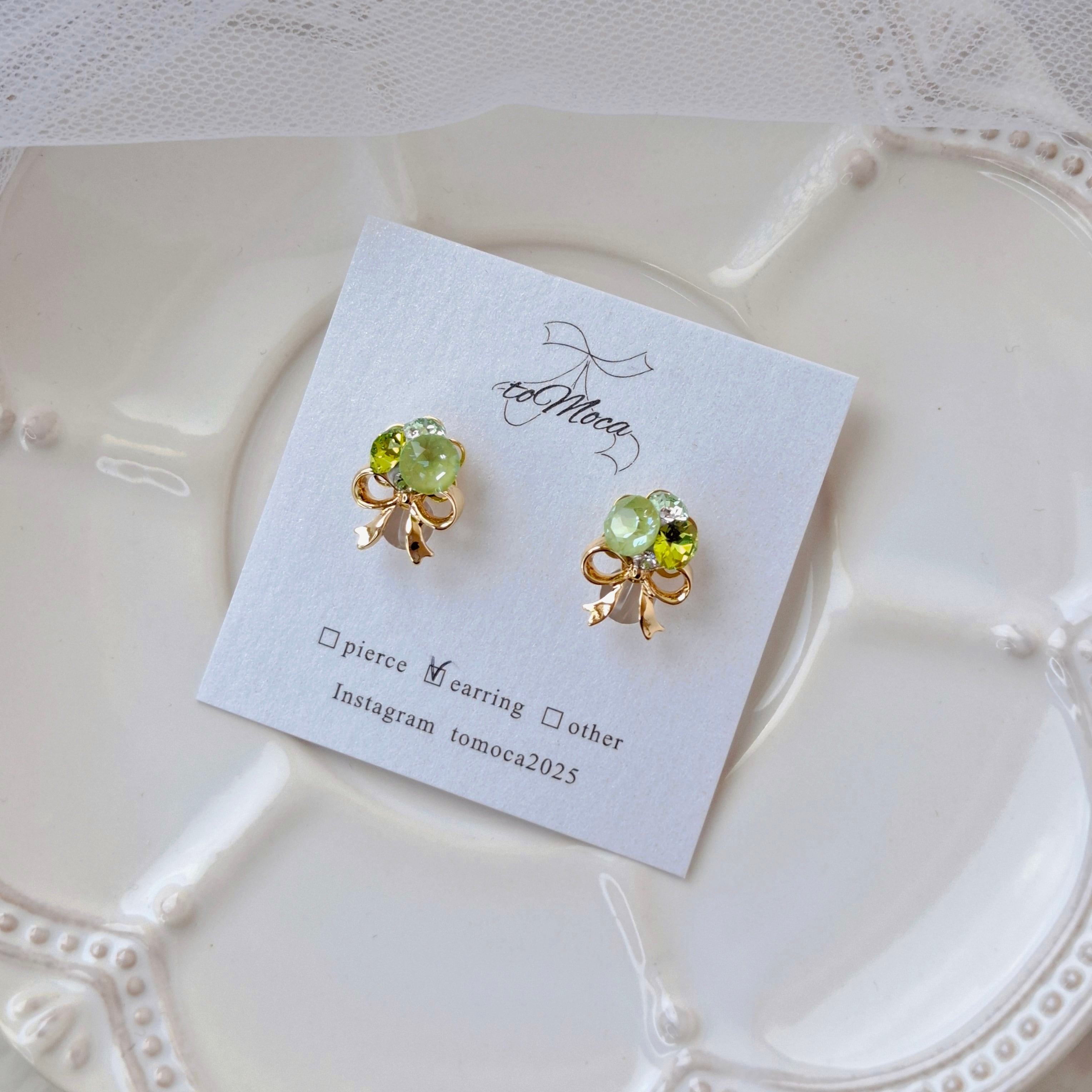 【Petit bouquet】ビジューのブーケピアスorイヤリング【パラダイスグリーン】