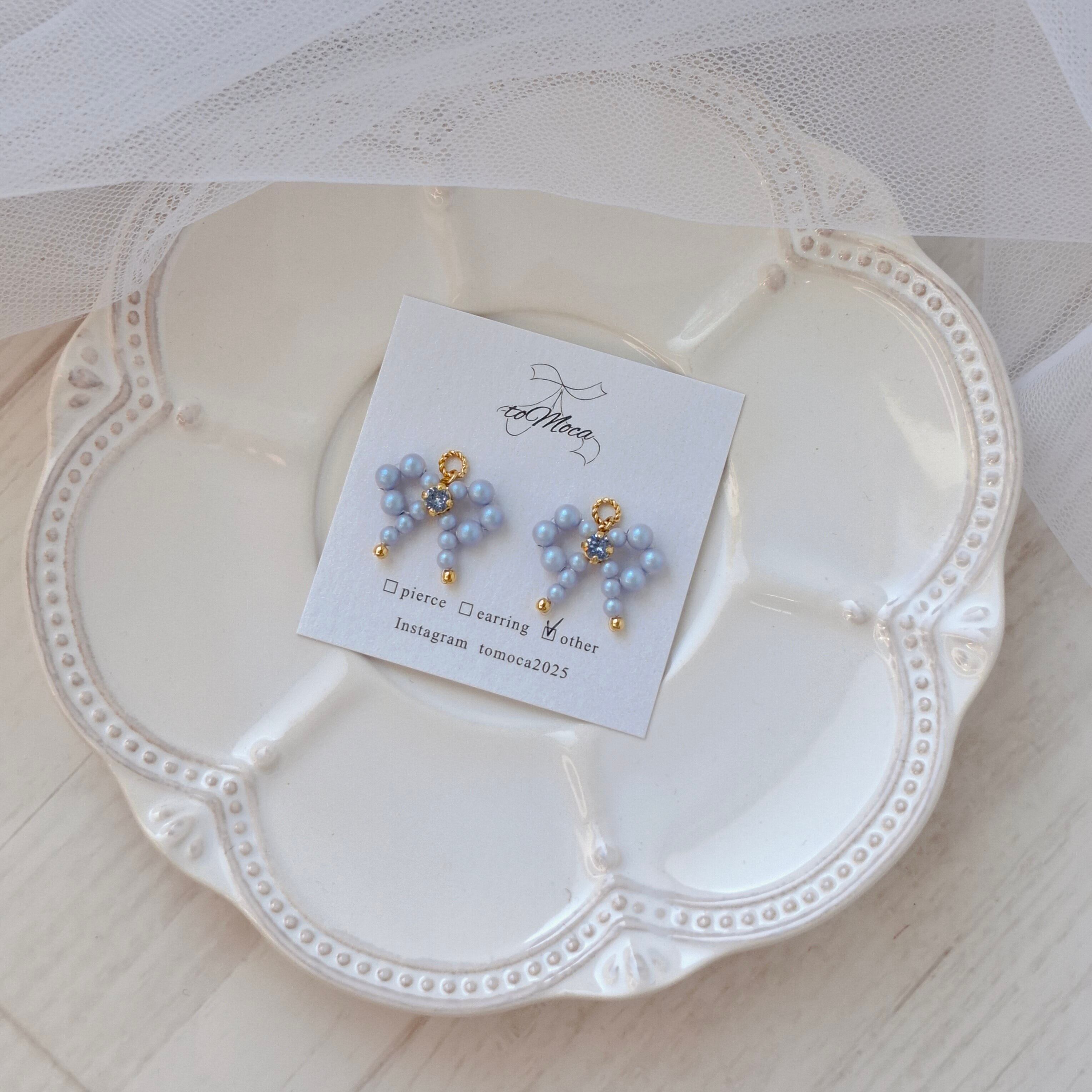 【Petit Pearl Ribbon Top】 パールの揺れるリボン【パステルブルー】