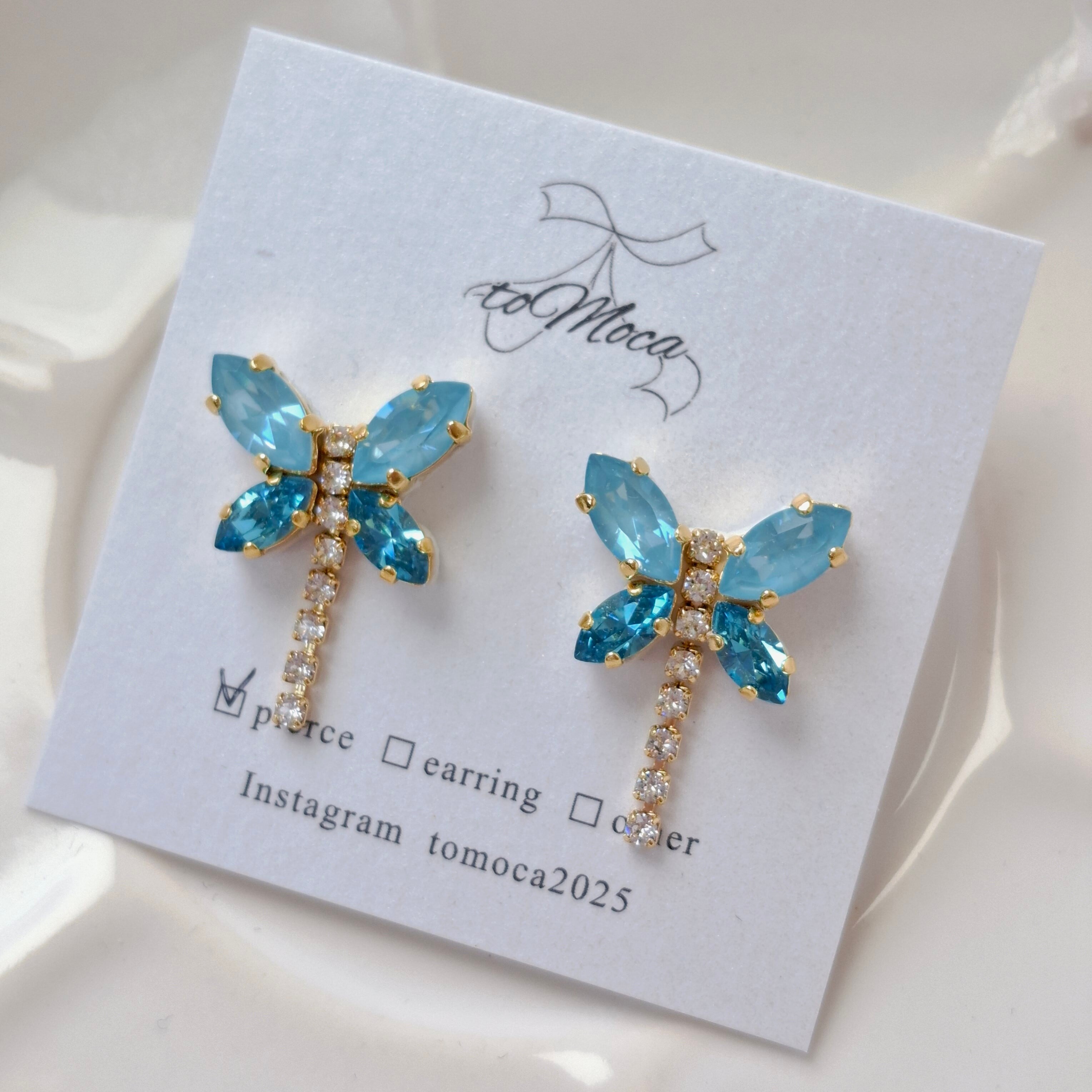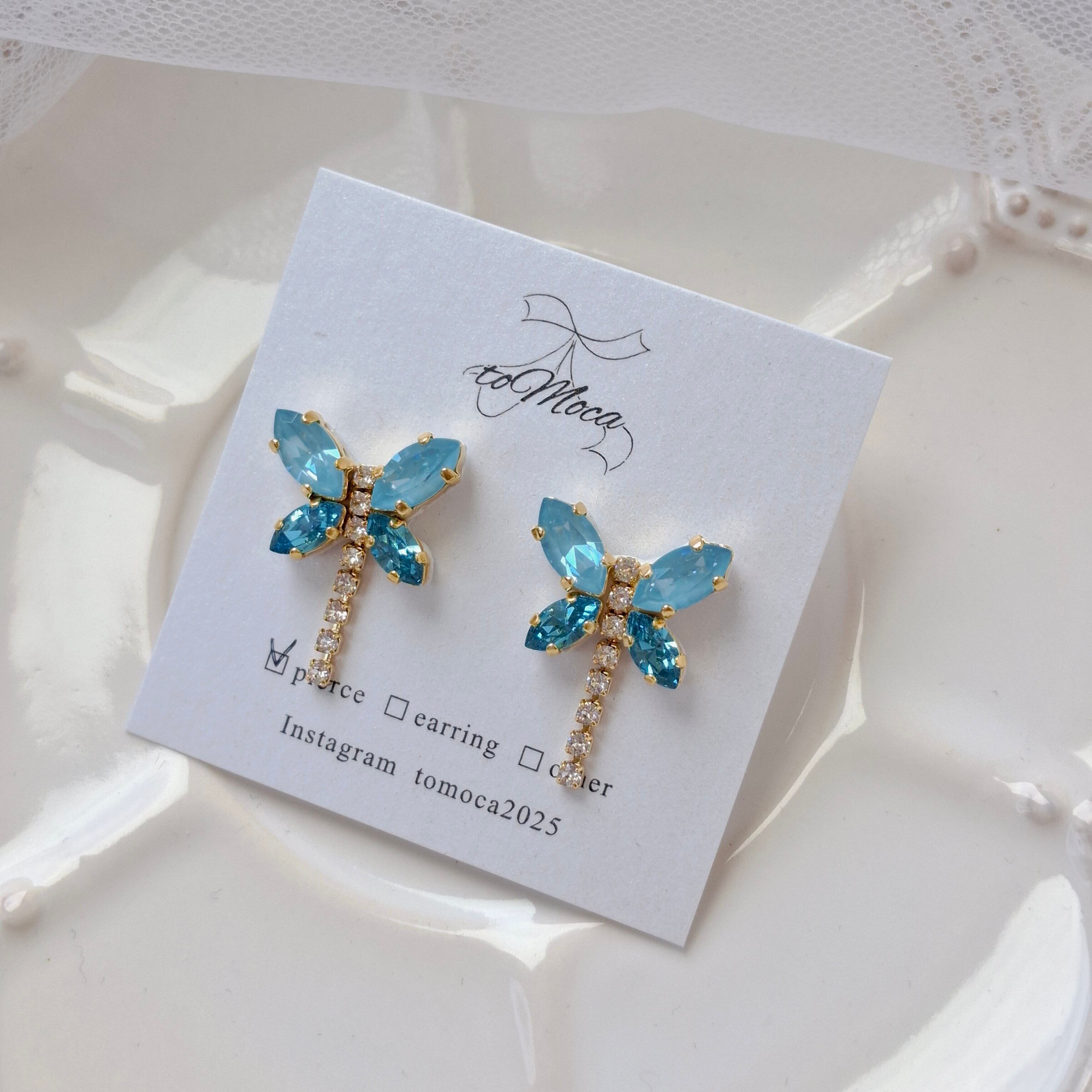 【Elegance:butterfly/受注生産】 キラキラ蝶々のピアスorイヤリング【パラダイスブルー】